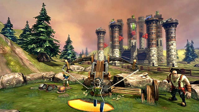 Gamers assume the guise of untested apprentice recently employed by the Wreck and Tinker Destruction Company, an outfit determined to purge the medieval realm of goblins by crumbling crenellations atop the mischievous monsters. Using gestures to aim and fire a virtual ballista, each stage provides players with a predetermined loadout of spire shattering weaponry. Preliminary levels bestow a giant orb which players can steer with their hands during the sphere’s leisurely-moving trajectory. Later, gamers catapult more exotic artillery, such as Flying Shot which can be guided by mirroring the movements of a bird in flight or the Split Shot which fragments into four smaller warheads.